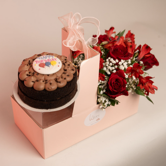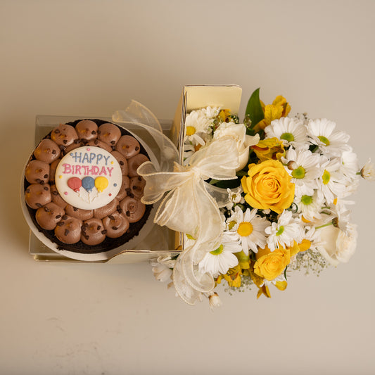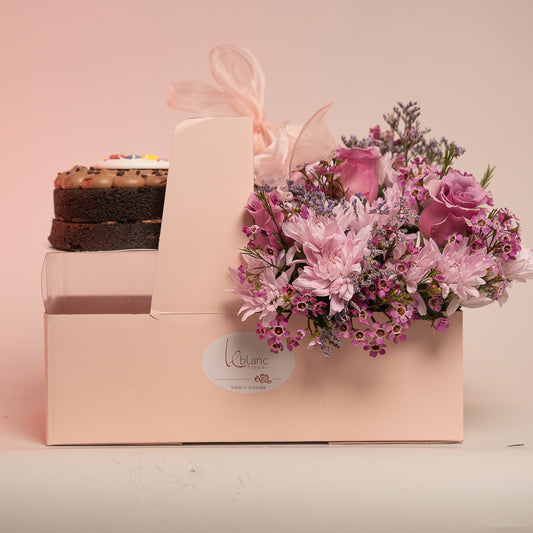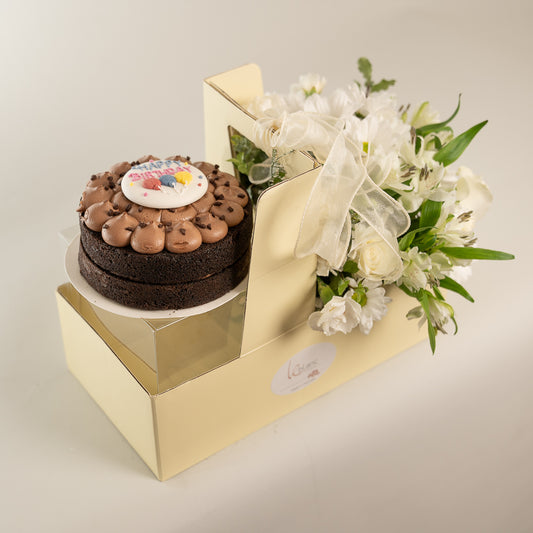 Happy Box Chocolate Cake - Yellow and White Australian Roses