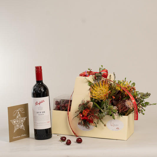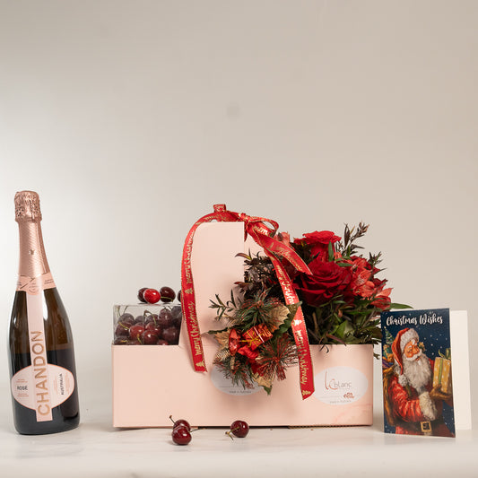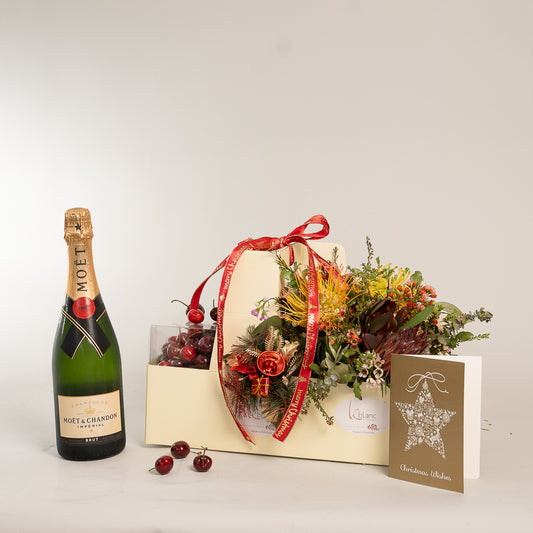 Chirstmas Hampers - Cherry Moet and Natives Flowers Box