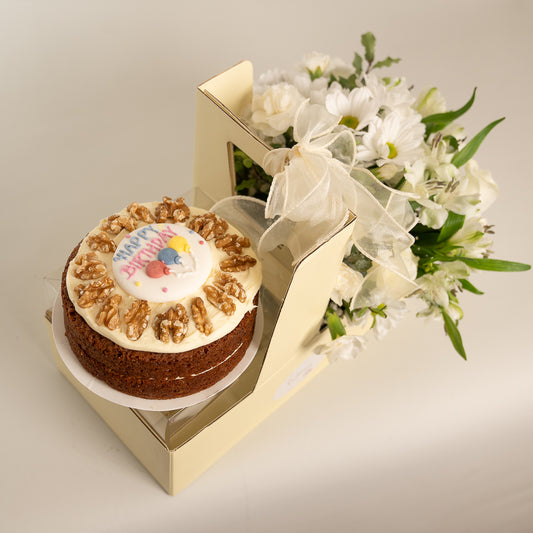 Happy Box Cake and White Flowers
