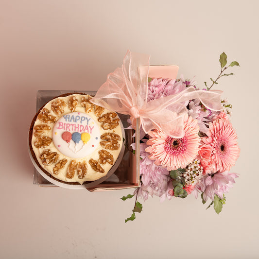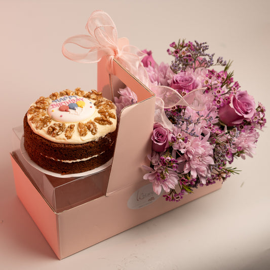 Happy Box Cake and Pink Flowers