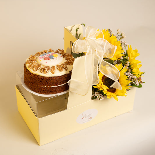Happy Box Cake and Sunflowers