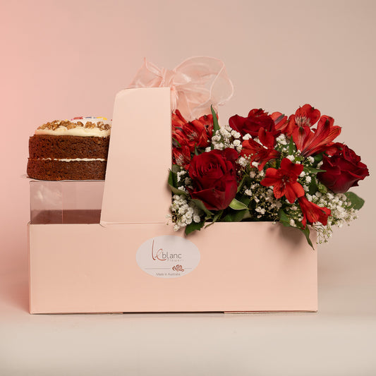 Happy Box Cake and Pink Australian Roses