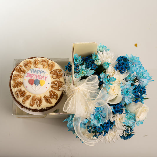 Happy Box Cake - Blue and White Flowers